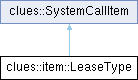 Inheritance diagram for clues::item::LeaseType:Public Member Functions | |
