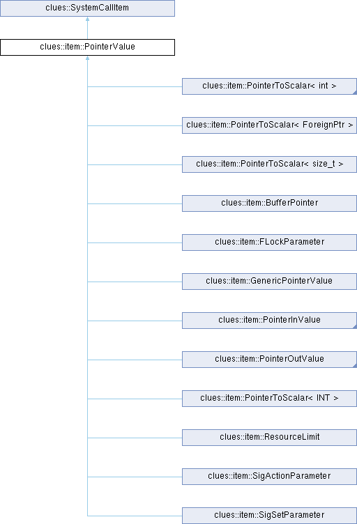 Inheritance diagram for clues::item::PointerValue:Public Member Functions | |