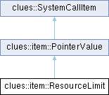 Inheritance diagram for clues::item::ResourceLimit:Public Member Functions | |
