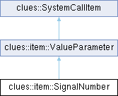 Inheritance diagram for clues::item::SignalNumber:Public Member Functions | |