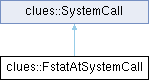 Inheritance diagram for clues::FstatAtSystemCall:Public Member Functions | |